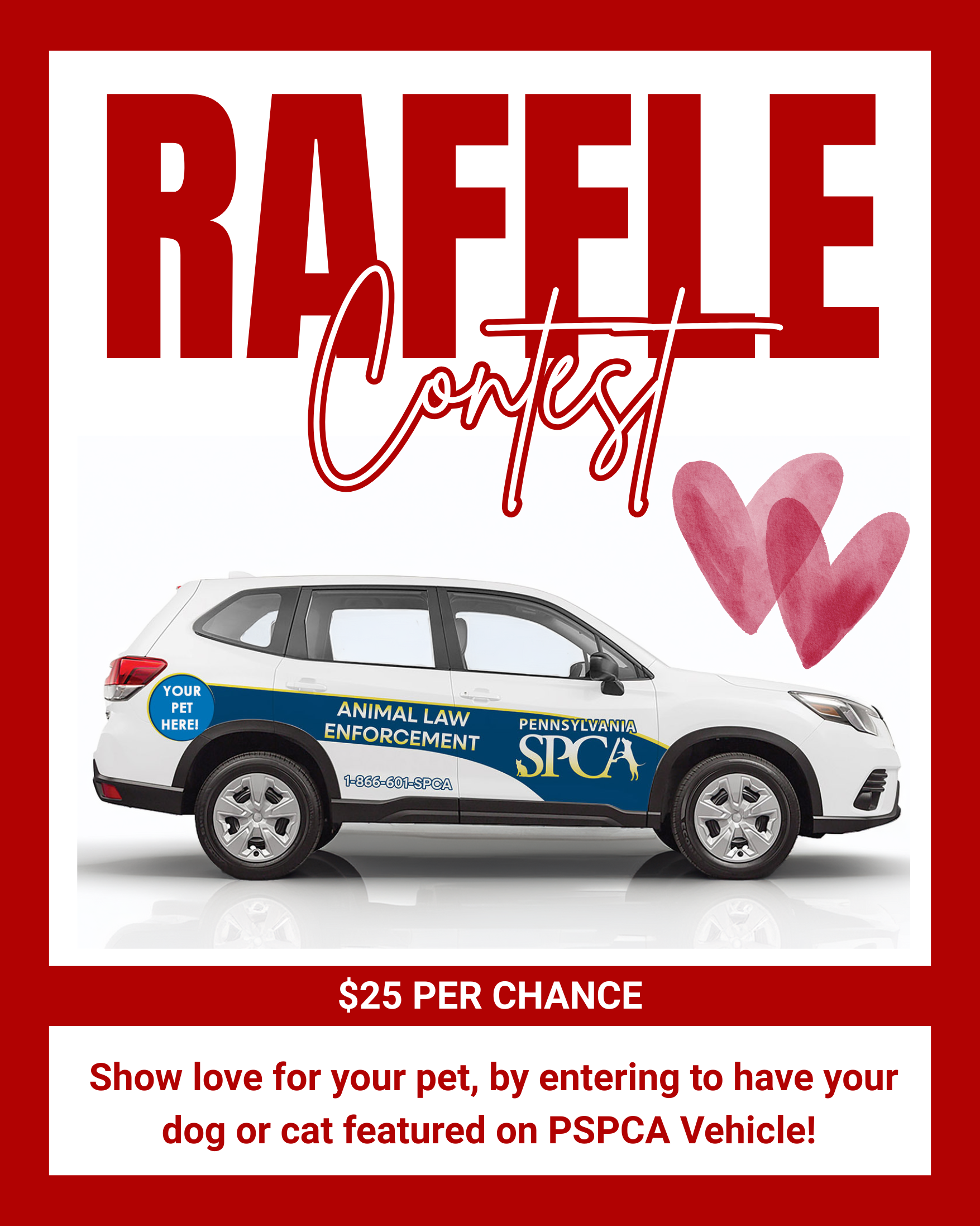 We have two Animal Law Enforcement vehicles getting brand new wrap designs! Each vehicle features two special spots for animal photos, and we're giving our amazing supporters the chance to have their beloved pet featured. Purchase contest entries for your chance to see your furry friend riding along on life-saving rescue missions throughout the Pennsylvania SPCA service area. Your pet could become the face of animal protection and help inspire others to support our cause!